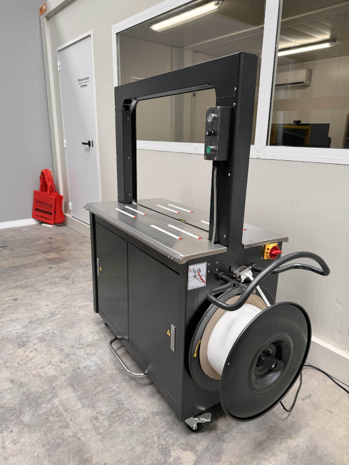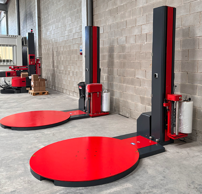 Altura útil de enfardado 2.100 mm, diámetro de plataforma 1.500 mm. Dimensión máxima de paleo 1.200 x 800 mm